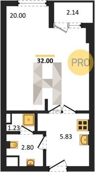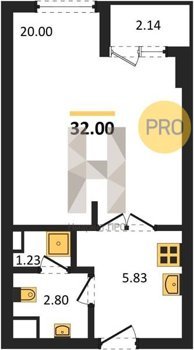 Площадь от 32 м2