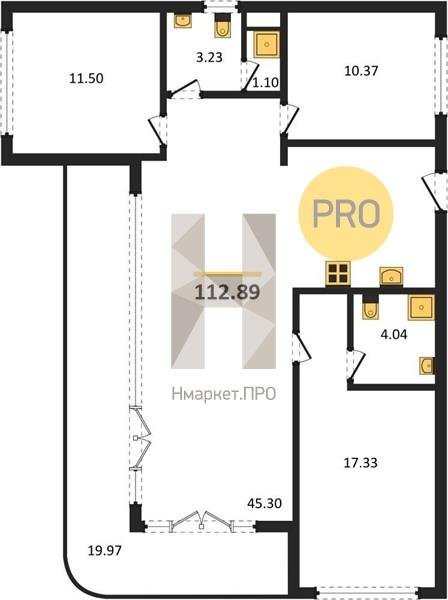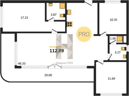 Площадь от 112.89 м2