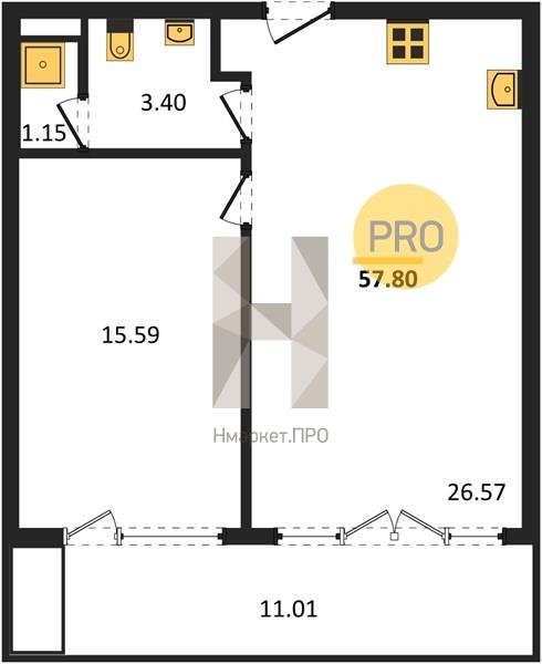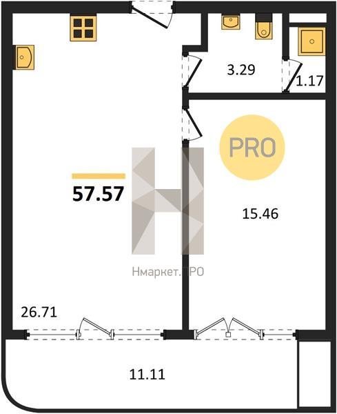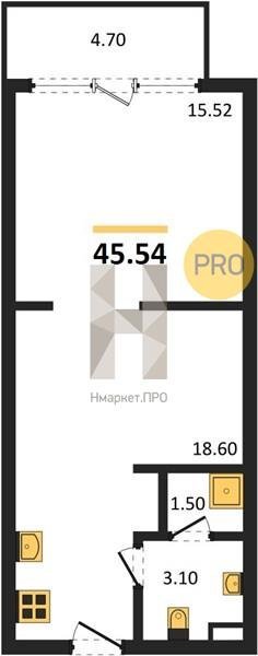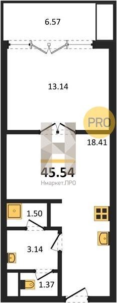 Площадь от 45.54 м2