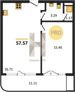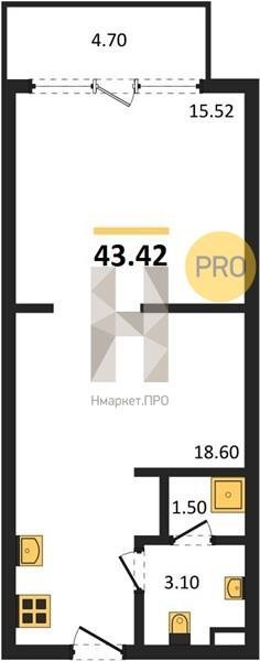 Площадь от 43.42 м2