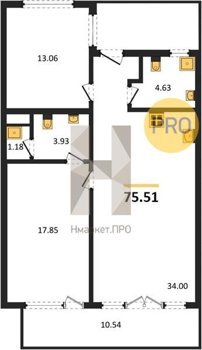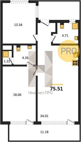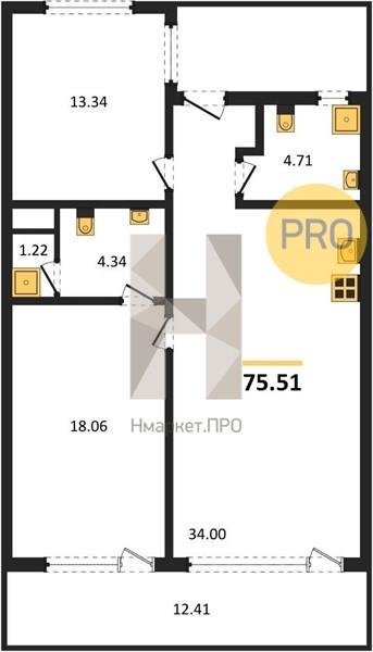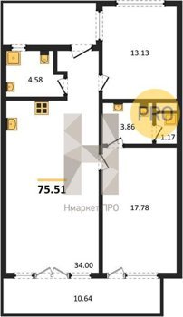 Площадь от 75.51 м2