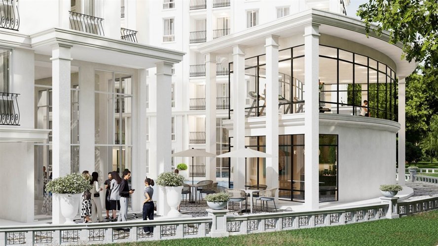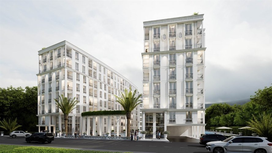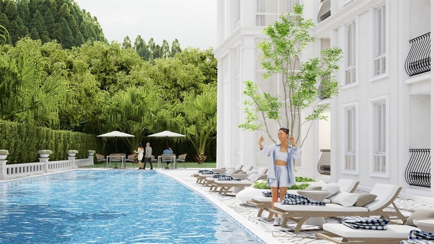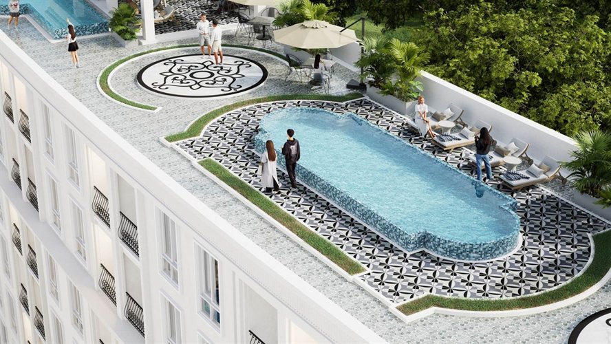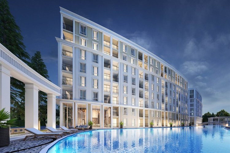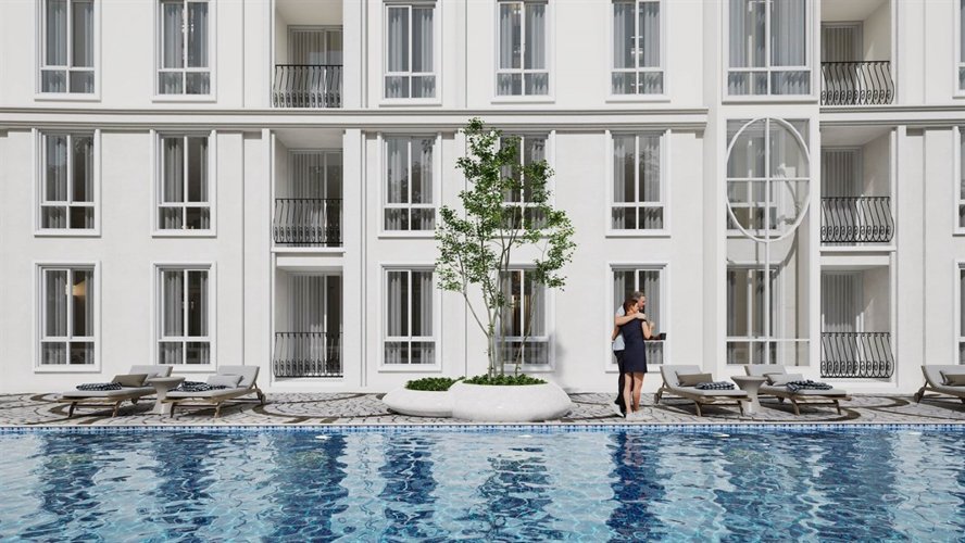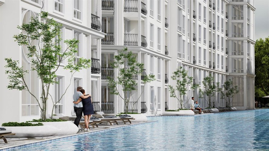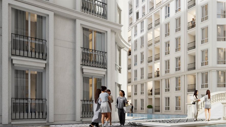 Дизайн Harmonia City Garden отражает изысканное сочетание Вдохновленный Европой Архитектура и современная эстетика. малоэтажный кондоминиум Комплекс тщательно спроектирован для создания привлекательной атмосферы, где жители могут ощутить и стиль, и комфорт. Комплекс состоит из четырех зданий на восьми этажах и окружен пышные пейзажи, фонтаны и соединенный с ними бассейн, усиливающие общую визуальную привлекательность и спокойствие окружающей среды.