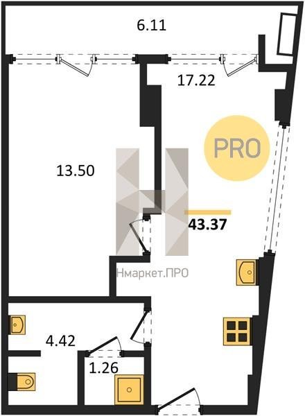Площадь от 43.37 м2