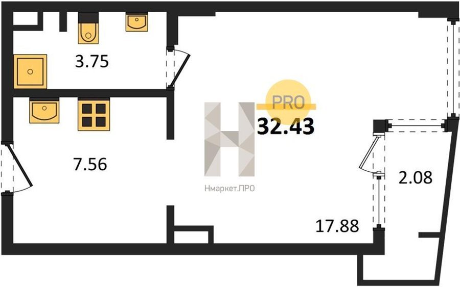 Площадь от 32.43 м2